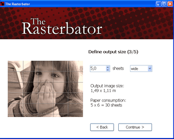 Rasterização é um processo de conversão de imagens. Em resumo, você pega uma foto ou ilustração e transforma em um raster de pixels ou pontos. O The Rasterbator é um pequeno programa que cria pôsters gigantes por meio deste processo. Você escolhe a imagem que mais gosta. Uma foto da família, dos amigos ou apenas um desenho e o The Rasterbator converte os arquivos. Você pode subir imagens de até 1GB de tamanho.